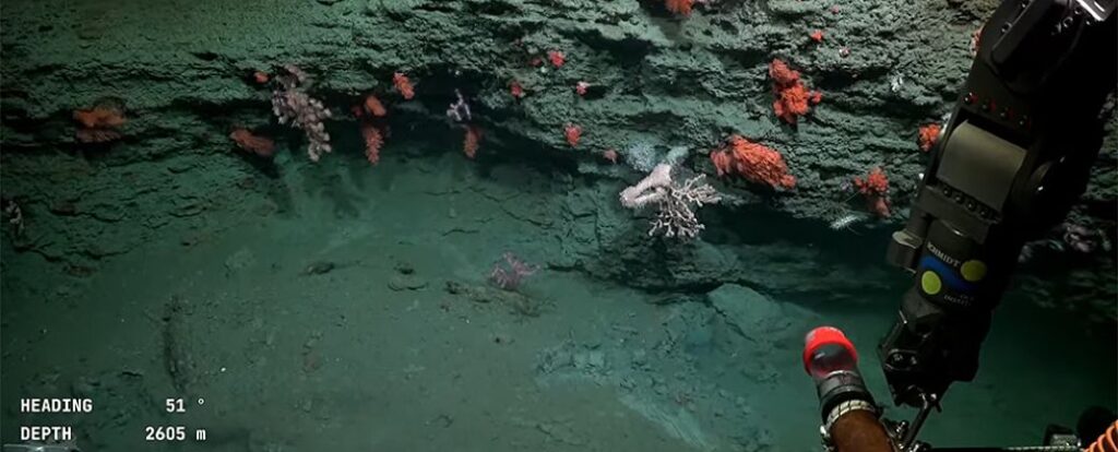 “Lo que me sorprende de esta expedición con el ROV es la observación directa de las paredes y lo empinadas que son, la magnitud de los derrumbes, y la arcilla semi-consolidada que parece ser dominante en los sectores de abundancia de corales duros. Uno de los objetivos integrados biológico-geológico de esta campaña es justamente entender la litología –estudio de las características de las rocas– que favorece determinada asociación de fauna”, describe Bozzano ante la Agencia.